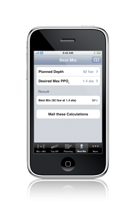 The Best Mix tool can help you decide on the mix you want to use for a given dive profile. Simply enter the Planned Depth and Desired Maximum Partial Pressure of Oxygen (PPO2) to see the mix that will give you the longest bottom time for those parameters (remember to watch your 24 hour Oxygen clock).