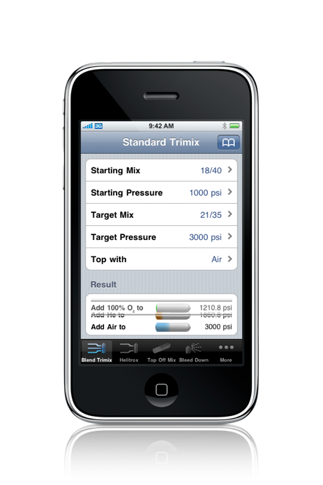 Trimix Tools shows you the target pressure after you’ve added each gas. In some case, you may need to adjust your fill order because of the available pressure in your supply gases. You can easily change the fill order in the Standard Trimix, Helitrox and Bleed Down tools by pressing on the tank image for the supply gas that you want to reorder and dragging it to it’s new location. The target pressures will adjust as you drag the supply gas to show the new values.