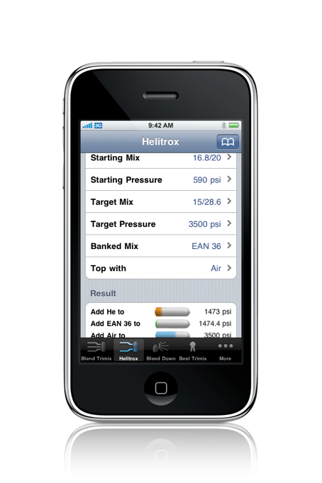 Heliair and Helitrox blending is directly supported with the "Helitrox" tab. You can calculate Helium based mixes using just Helium and one or two available Nitrox mixes and/or air. This eliminates the need to use pure Oxygen for certain mixes.