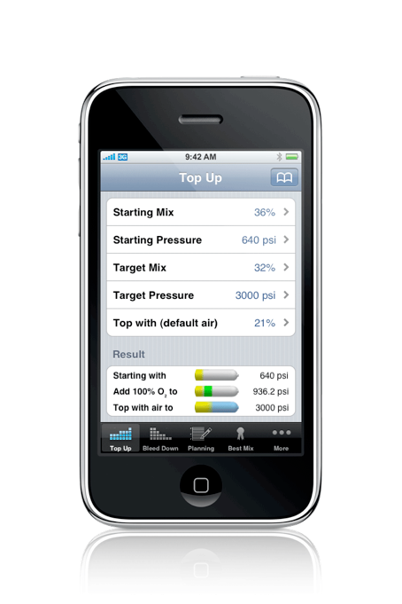 Nitrox Tools is a native application that works with iPhone 3G, the original iPhone and iPod touch. It provides Enriched Air Nitrox blending and dive planning tools at a touch wherever you need them. Use it at your fill station while blending Nitrox or at the dive site to help plan your dive.